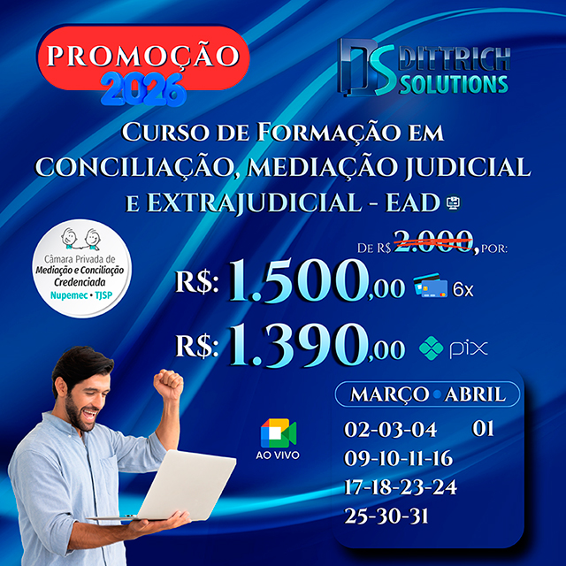 Reconhecimento: A DITTRICH SOLUTIONS possui credenciamento junto ao NUPEMEC/CNJ e ao Tribunal de Justiça do Estado de São Paulo desde 2016. Também conta com reconhecimento da Escola Nacional de Formação e Aperfeiçoamento de Magistrados (ENFAM). Esse reconhecimento segue os critérios estabelecidos pela Resolução ENFAM n. 6/2016, posteriormente alterada pela Resolução ENFAM n. 3/2017, além dos conteúdos adicionais exigidos pelos tribunais.